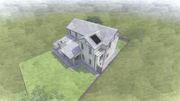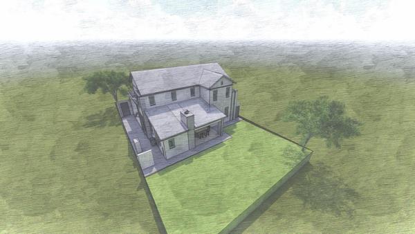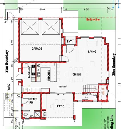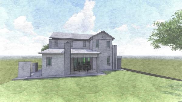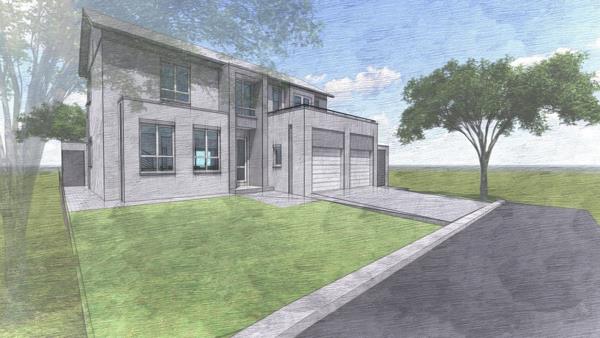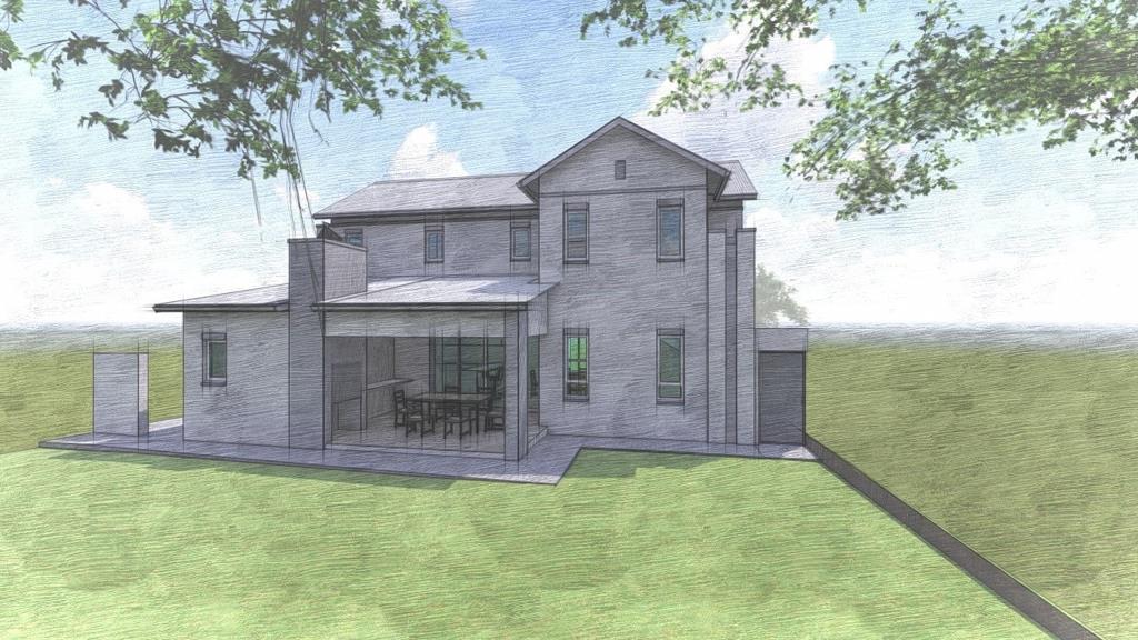 The architectural renderings showcase a contemporary two-story design with a sleek aesthetic and ample natural light from large windows. The ground floor features an inviting open-plan living and dining area, perfect for both daily life and entertaining. A well-appointed kitchen, with a separate scullery, forms the heart of the home, and is perfect for family life. The property also includes a staff room with an en-suite bathroom, adding to its functionality.