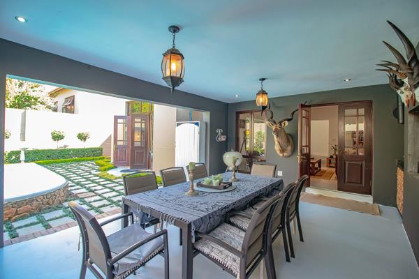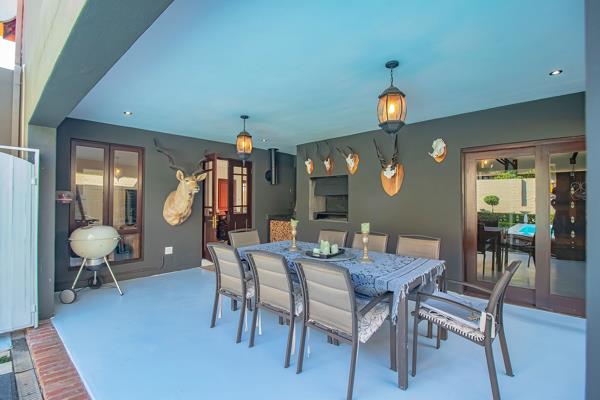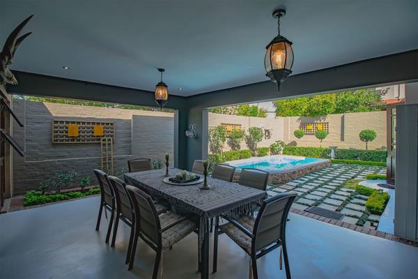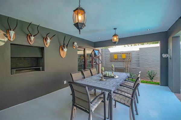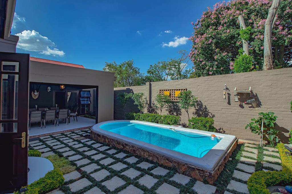 An extended covered patio far more generous than most becomes an outdoor salon beneath open skies. With its built-in braai, it invites long summer lunches, candlelit dinners, and slow Sunday mornings. Beyond, the garden unfolds like a private sanctuary, complete with a newly painted swimming pool, bubble blanket, new pump, and automatic cleaner ready for laughter, real swims, and sun-drenched afternoons.