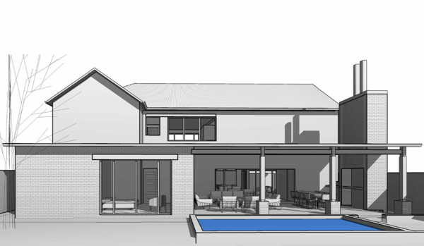 Expansive covered patios flowing seamlessly to a sparkling pool and inviting boma perfect for effortless entertaining
