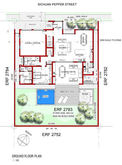 Discover contemporary living in this modern 4-bedroom, 4-bathroom residence nestled within the secure Heritage Hill Estate. Boasting a striking modern architectural design, the home features a generous floor size of 364 sqm on a 500 sqm erf, this property offers ample space for family life. A smaller building option is also available, with a floor space of 250 sqm with a cost of R5 500 000.