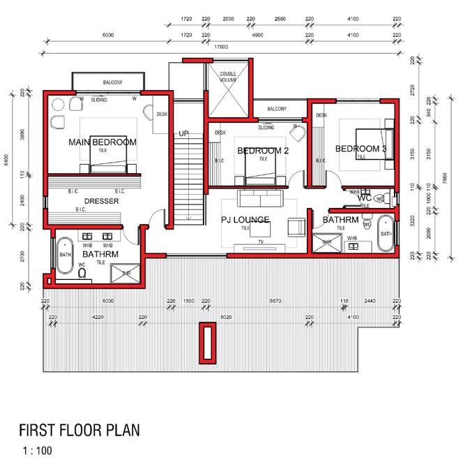 On the first floor, you will find three comfortable bedrooms, each fitted with built-in cupboards. The main bedroom features a walk in wardrobe and access to a small balcony. Also upstairs is a pajama lounge, for those cozy mornings to relax and have a coffee.