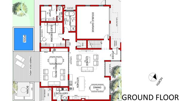 This well-balanced family home offers a combination of modern design, practical layout, and exceptional entertainment features. With a PJ lounge, multiple balconies, staff accommodation, and a beautifully designed outdoor area including a timber deck, pool, and BOMA, it presents an excellent opportunity for comfortable family living within a secure lifestyle estate.