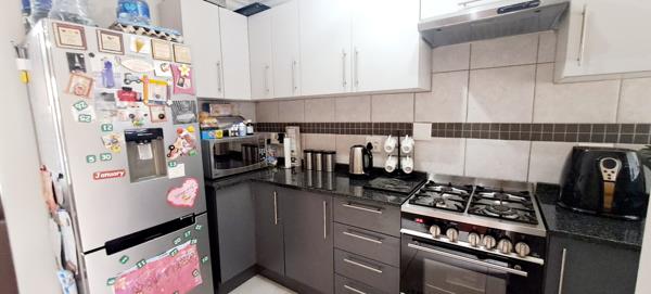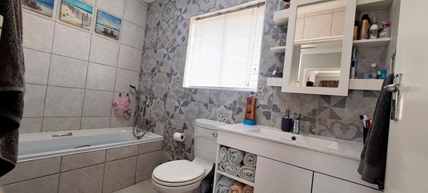 Both bedrooms are generously sized with built-in cupboards, providing ample storage. The contemporary bathroom features a gas geyser, ensuring energy-efficient hot water supply. A linen cupboard in the lounge adds extra storage convenience.