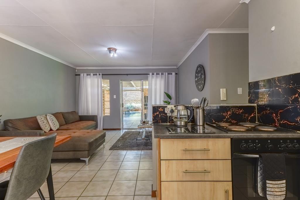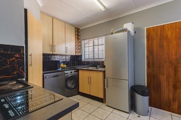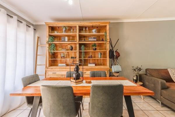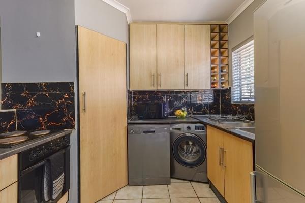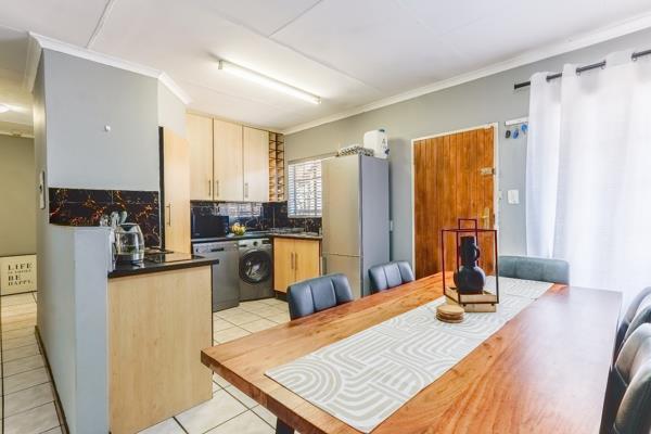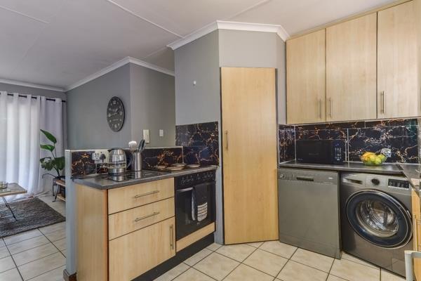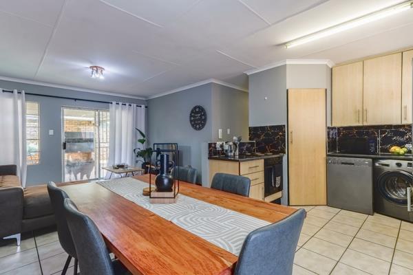 Discover this inviting residence nestled within a secure complex in Highveld, Centurion. This modern home offers a harmonious blend of comfort and convenience, ideal for contemporary living. The heart of this property is its open-plan living area, seamlessly connecting the lounge, dining room, and a well-appointed kitchen. The kitchen boasts light wood-toned cabinetry, dark marble-look countertops, and a stylish black tiled backsplash. Integrated modern appliances, including a dishwasher, washing machine, oven, hob, and microwave, ensure functionality, complemented by a built-in wine rack and ample storage. Tiled flooring extends throughout, enhancing the spacious feel and natural light. This home features three comfortable bedrooms and two bathrooms, including an elegant en-suite for added privacy and convenience. Step outside to a private garden area, perfect for relaxation and outdoor entertaining, complete with a built-in braai and direct patio access. Two garages provide secure parking, and pets are allowed, making this an ideal home for animal lovers. Situated within a security complex, residents benefit from enhanced peace of mind. Features like an access gate, electric fencing, 24-hour security, and a security gate contribute to a safe environment. The home is also fibre-ready and includes satellite connectivity. Highveld, Centurion, is a sought-after suburb known for its convenient location and family-friendly atmosphere, offering easy access to major routes, shopping centres, and reputable schools.
