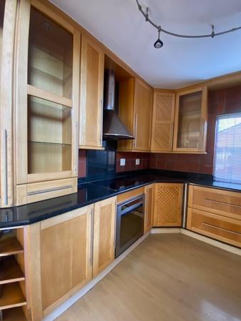 The private quarters comprise three bedrooms and two bathrooms, including a luxurious en-suite. Outdoors, the property features a swimming pool, a patio, and a meticulously maintained garden on its 820 sqm erf, ideal for relaxation. Security is paramount, with an alarm system, CCTV, and an access gate providing peace of mind. This home in Centurion offers a desirable lifestyle.