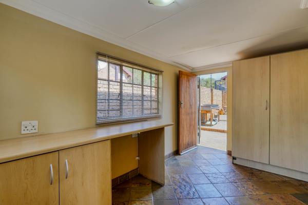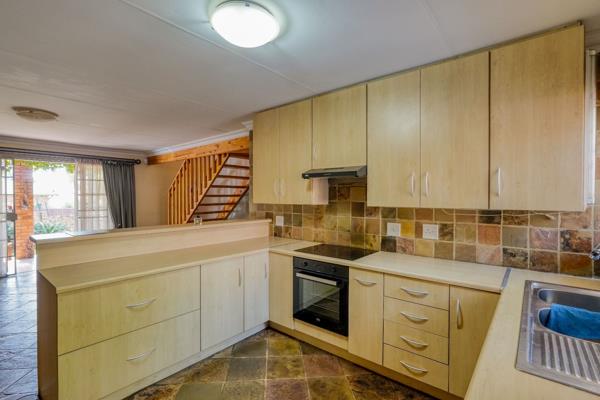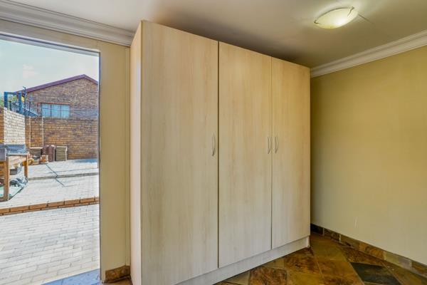 The property includes a double garage with parking for two additional vehicles in front, along with a Wendy house for garden storage. A 2050L JoJo tank supports water supply, and additional features include a new oven, new geyser, electric fence, and armed response. The home is also located in a no loadshedding area.