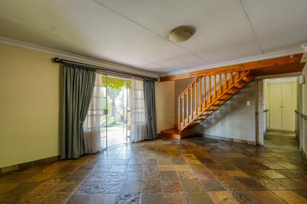 As you enter the home, the living spaces unfold into a comfortable flow between the dining room and lounge, creating a welcoming area for everyday living. The kitchen sits nearby, spacious in design with a pantry and a separate scullery, making it both practical and easy to use. From the living areas, you step out onto a downstairs patio that looks onto an established garden, giving the home a calm and well kept outdoor feel.