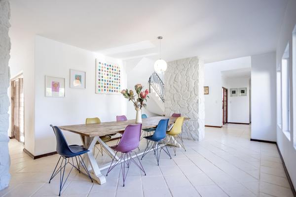 Step outside to a covered patio with a built-in braai, overlooking a sparkling poolideal for summer days and weekend gatherings. The home is perfectly positioned next to a lush park within the estate, creating a serene and family-friendly setting.
