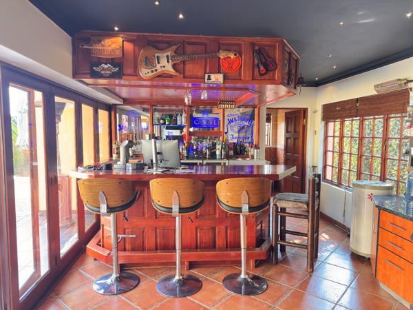 The ground floor offers ample living space and features an indoor braai area with a built-in bar, gas braai and woodcoal braai with a pizza oven for those lazy evenings. Sliding doors opens the entertainment area that flows out to the heated swimming pool and sunken boma, perfect for those late-night family gatherings.