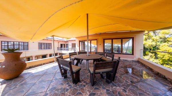 TRENDING FEATURES: Energy efficiency is a defining feature. The property operates virtually off-grid, powered by a 15KVA Victron inverter system with dual MPPT chargers, 17KVA PylonTech batteries, and 30 solar panels producing around 13KVA. Solar geysers, underfloor heating, and comprehensive Wi-Fi connectivity throughout the home ensure modern comfort with minimal environmental impact. Staff accommodation, a double automated garage with rear access, a spacious covered carport for extra vehicles, and a large multi-use workshop or storage area. The landscaped garden is enhanced by a cascading fountain and a separate storage facility with direct access to the servitude, perfect for morning jogs or evening dog walks.