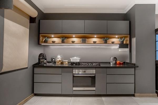 The centrepiece of the home is the modern designer kitchen, flowing effortlessly into the open-plan living and entertainment area. A striking feature fireplace adds ambience, while expansive stacking doors open onto a beautifully appointed patio with a built-in braai, overlooking a generous private stand and heated swimming pool. An additional garden entertainment area completes this outdoor havenperfect for gatherings, relaxation, or simply enjoying the serenity of the surroundings.