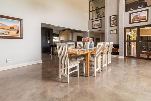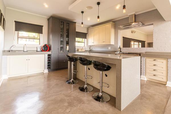 Last but not least, a huge, total separate entertainment area comprises of a kitchen, built-in braai (gas) bar counter, fire place, guest bathroom and cascading doors opening to the shimmering pool and extensive garden.