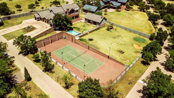 In the main bedroom youll find a walk-in dresser, built-in cupboards, private sitting area, a full en-suite bathroom and double basins. The master bedroom has a unique, luxurious style and design. It leads onto a balcony with a view of the scenery, tranquil pool, tennis court and garden.