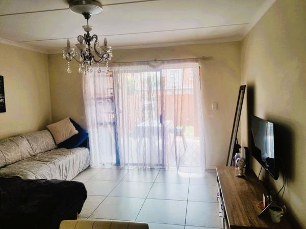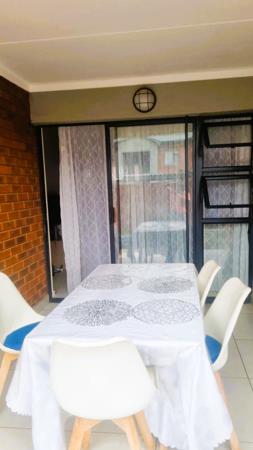 The open-plan lounge flows seamlessly to a covered patio with a built-in gas braai, overlooking a small private gardenperfect for relaxed outdoor living.