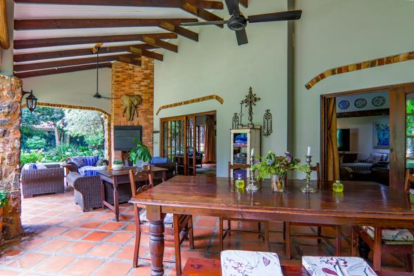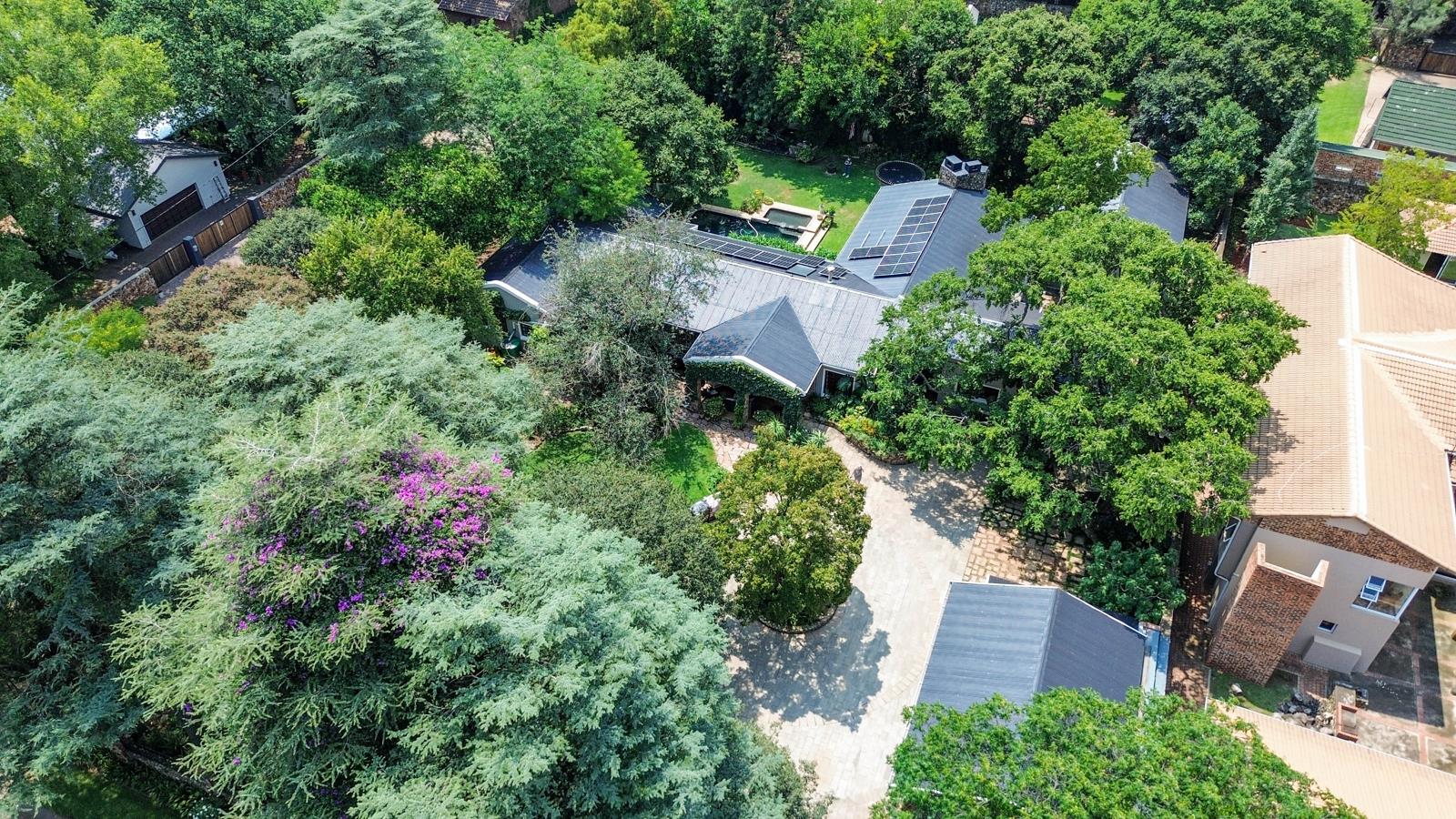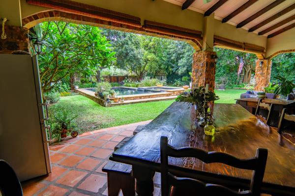 This beautiful 650 sq m home is on a 2995 sq m erf. The house perfectly positioned to enjoy many facets of this home with the lush trees and garden all around it .