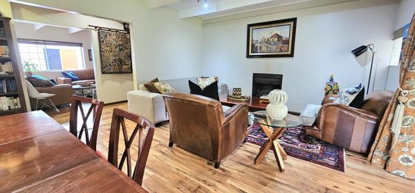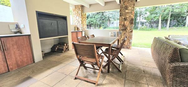 The main house features 3 generously sized bedrooms, 2 bathrooms, and a guest WC, complemented by multiple living areas including a TV room, formal dining room, and sitting room with a wood fire place, all flowing seamlessly to a covered patio with built-in braai perfect for effortless entertaining.