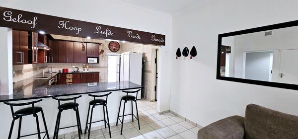 Upon entering the residence, you have a spacious enclosed patio. On the left you enter into the living room which has enough space for a larger couch or two. Bordering the living area is a breakfast bar by the spacious kitchen, fitted with electric stove and extractor from DEFY, with more than enough space for a double fridge to secure your favourite midnight snacks. Behind the kitchen you have a nice scullery and laundry. And then, the most beautiful pantry, to perfection!