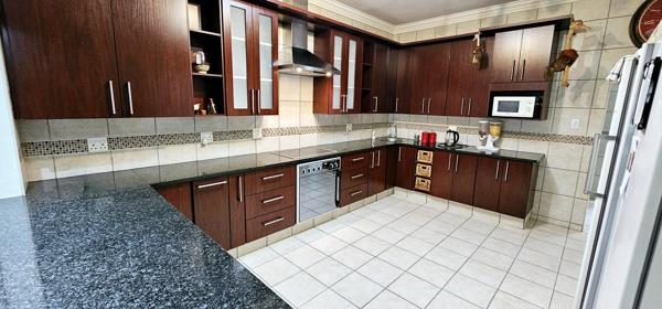 On the right side of the house, you have enough parking space to accommodate 5 vehicles. You can also gain access to the back of the house via the garage door located at the back. Behind the double tandem garages is a great storeroom / workshop for Dad. This property is located in a quite street with an electric fence securing the premises. The solar geyser is perfect for those warm sunny days.