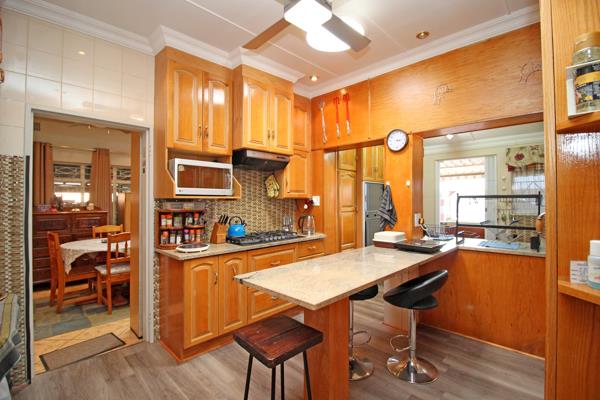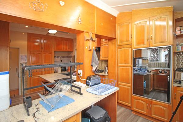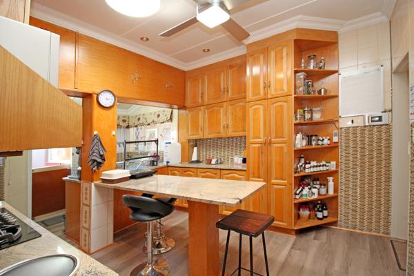 Set on a 743 m2 erf with 274 m2 under roof, this home includes two bathrooms, each with a bath, shower, basin, and toilet. The main kitchen impresses with two ovens, ample cupboards, a scullery, and a pantry perfect for cooking and entertaining.