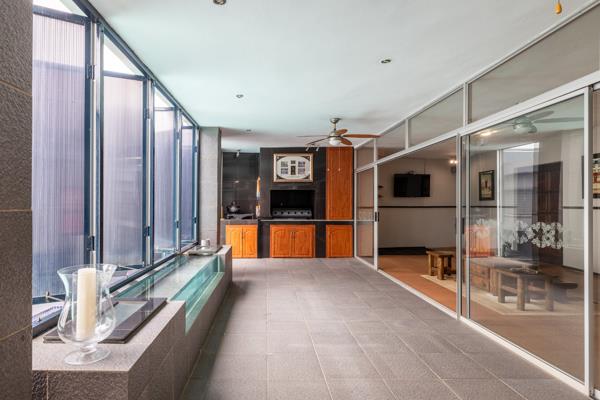 Outdoor living is a delight with a private swimming pool which is the centre of attraction and visible from all rooms, perfect for enjoying the South African climate, complemented by a dedicated braai room for effortless entertaining. The property also benefits from a well-maintained garden and paved areas. For vehicle accommodation, there are three garages and a carport as a bonus, ensuring secure parking and additional storage.