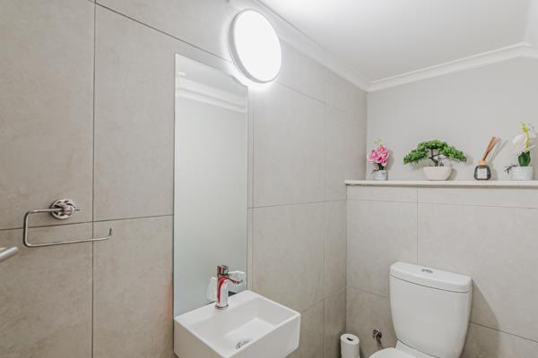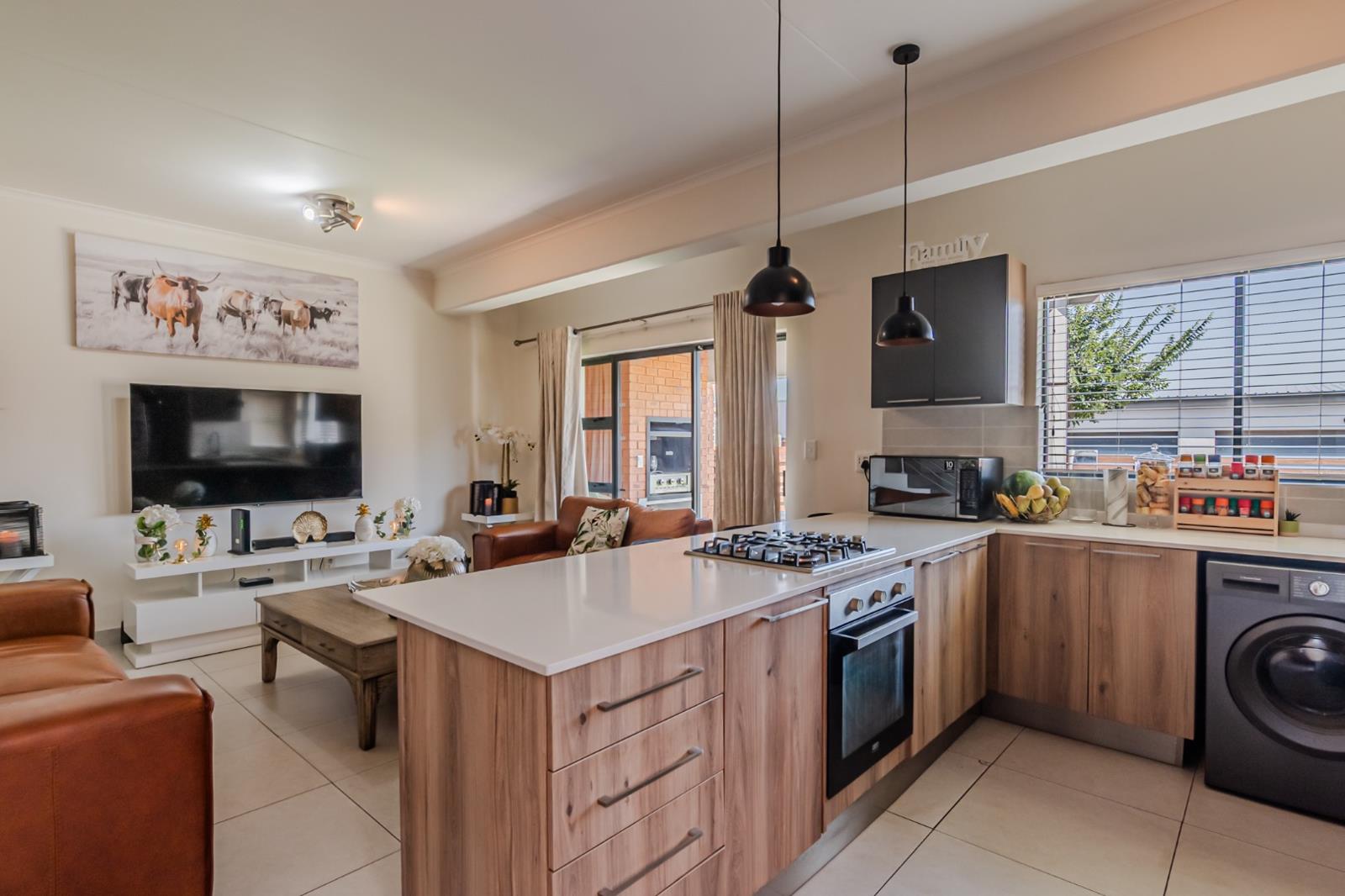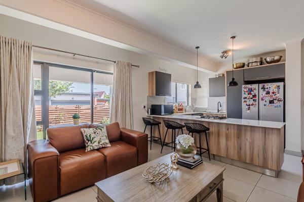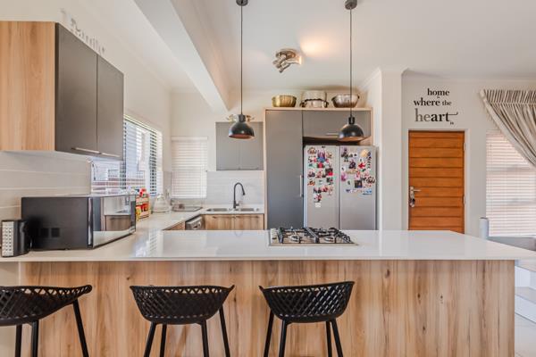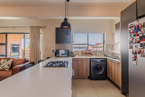 Discover modern living in this inviting 3-bedroom, 2.5 bathroom home located within a secure estate in Louwlardia, Centurion. Spanning a generous 161 sqm under roof on a 530 sqm erf, this residence offers a contemporary open-plan design, perfect for comfortable family life and entertaining. The heart of the home features a sleek, modern kitchen equipped with a gas hob, built-in oven, and ample white countertops, complemented by stylish wood-grain and dark grey cabinetry. An integrated washing machine adds to the kitchen''s functionality, while large windows and sliding doors ensure abundant natural light throughout the living and dining areas.