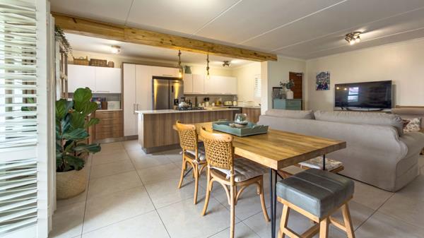 Three beautifully appointed bedrooms offer tranquillity and comfort. The main suite features a stylish en-suite bathroom, while the remaining two light-filled bedrooms enjoy generous built-in cupboards and garden views. Each bedroom is an invitation to unwind and feel at home.