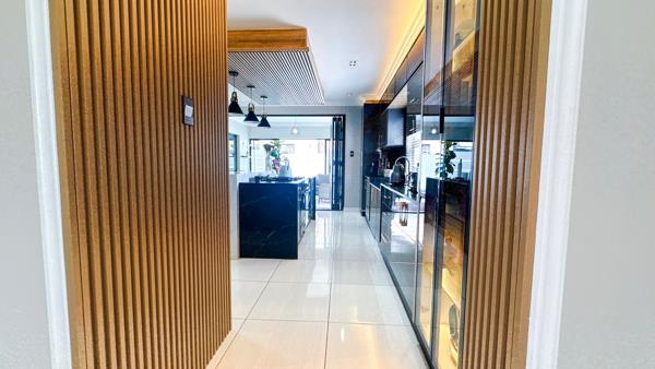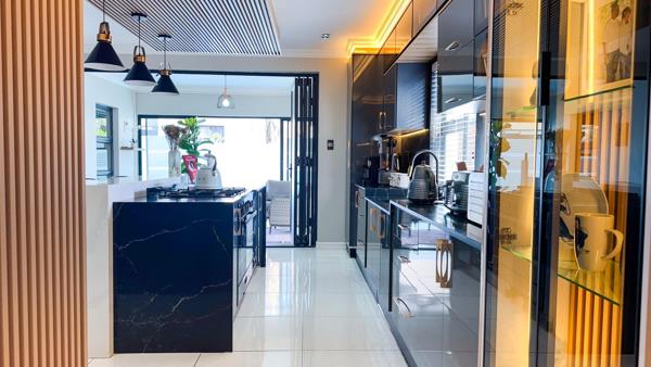 Warm and spacious open plan Living, designer kitchen equipped with sleek cabinetry leading to a beautiful outdoor area with a large swimming pool.