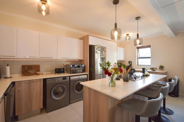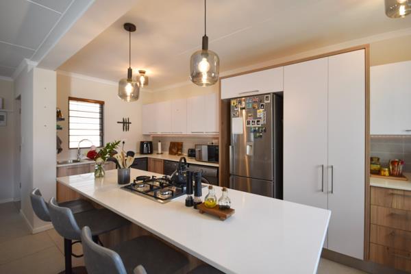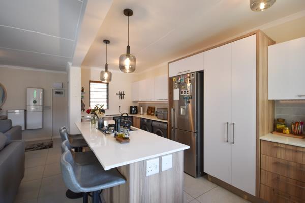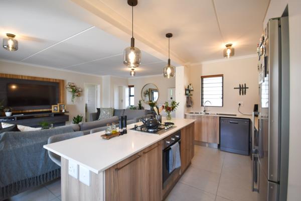 VIEWINGS BY APPOINTMENT ONLY - The open-plan lounge, dining, and kitchen area is filled with natural light, creating an inviting space for both everyday living and entertaining. The sleek kitchen is finished with a practical breakfast island, making it ideal for quick meals or social gatherings. Step outside to the covered patio, complete with a built-in gas braai, where you can entertain friends and family throughout the year.