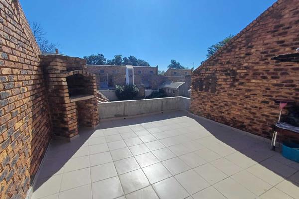 Not your average townhouse . This 1st floor townhouse offers a spacious living area leading onto a sizeable patio ( with built in braai and view ) with open plan kitchen . The floor downstairs has beautiful slate tiles.
