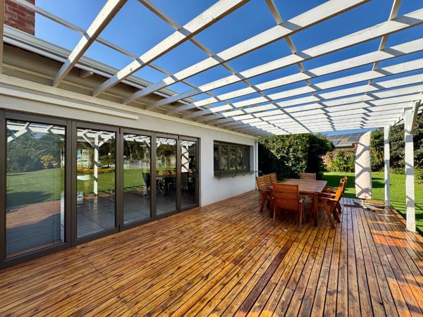 As you step inside this stunning property, you are welcomed by a spacious open-plan lounge and dining area. The elegant, tiled floors create a sense of modernity while the aluminium stack doors flood the space with natural light. These doors lead to a deck and pergola area, perfect for relaxing or hosting guests in style.