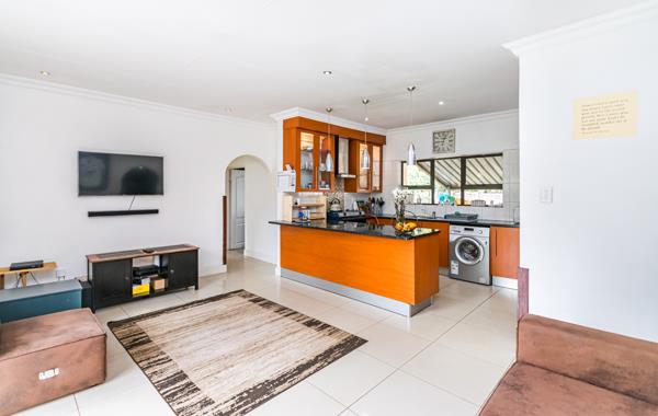 The home features two inviting living areas enhanced with downlightsone boasting a cozy fireplace, and the other opening onto the garden while flowing seamlessly into the open-plan kitchen. The kitchen offers ample cabinetry, a pantry cupboard, generous workspace, and space for a dishwasher, with the washing machine connection conveniently positioned elsewhere in the home.