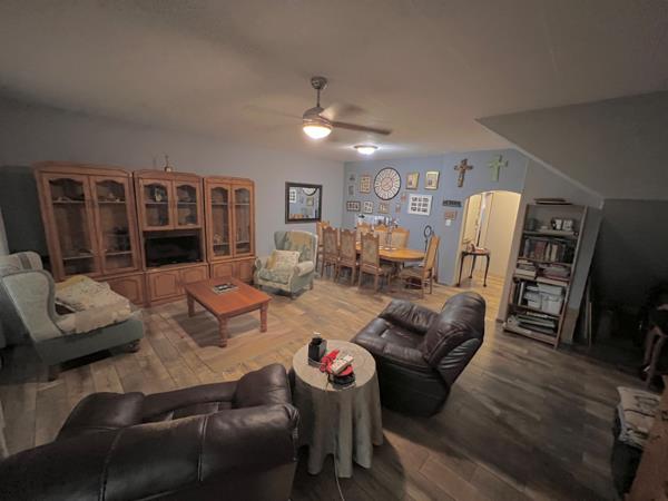 Security is a priority, with features including an access gate, electric fencing, and burglar bars, providing peace of mind. Externally, the property boasts a generous erf size of 3761 sqm, offering ample garden space for outdoor activities and relaxation, complemented by practical paving. A single garage and an additional parking space cater to your vehicle needs.