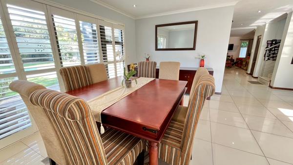 Step outside to a covered patio with a built-in braai, overlooking the sparkling swimming pool and lush green gardenperfect for entertaining family and friends.