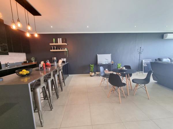 This unit has a welcoming entrance, an open plan lounge & dining room with an air conditioning unit, an eye catching kitchen with a breakfast nook, gas stove, oven and ample of cupboard space. 2 luxurious bedroom and 2 bathrooms (main ensuite with Airconditioning).