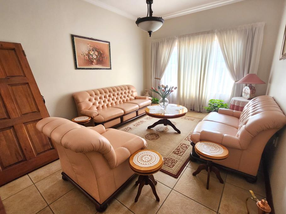 The property features a lovely entrance hall, 3 open living spaces, a well-sized kitchen with a pantry, electric stove and ovens, and a separate scullery with ample of storage.