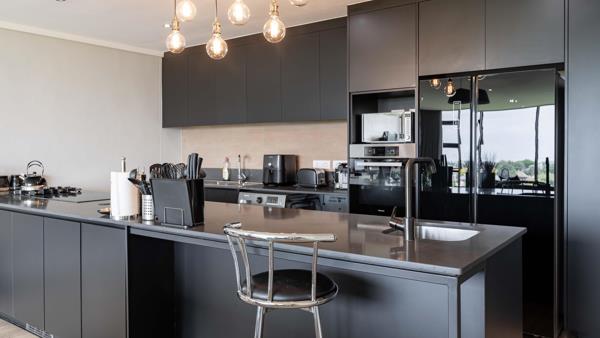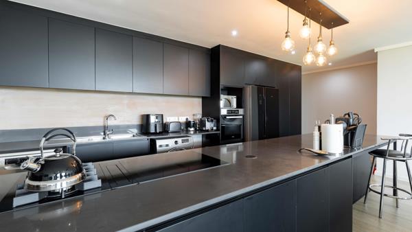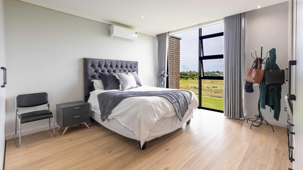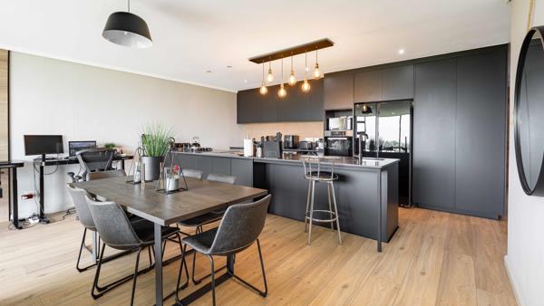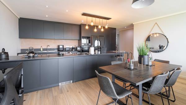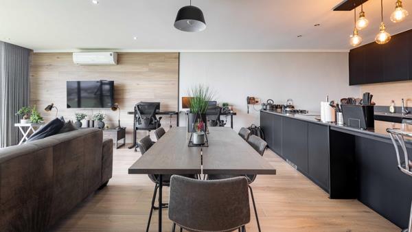 The open-plan living area features sleek finishes, a seamless flow, and an air-conditioned lounge and dining space. A gourmet kitchen with a large center island, gas stove, and ample cupboard space makes entertaining effortless. Included in the sale are top-tier appliances: a dishwasher, washing machine, tumble dryer, and more.