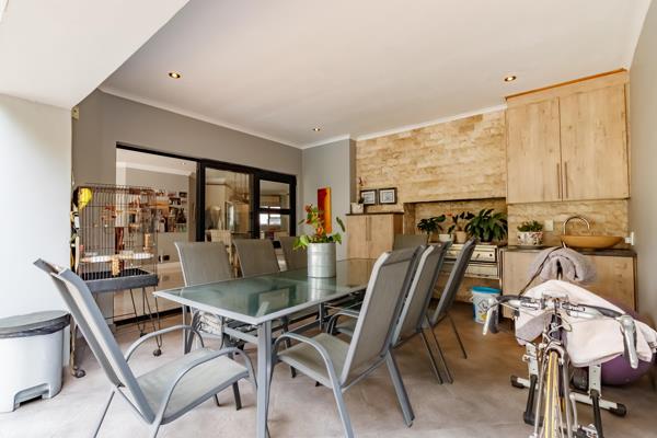 From the moment you step into this beautifully designed home, youre welcomed by a sense of warmth, comfort, and effortless flow the perfect setting for family living and entertaining. The open-plan kitchen and living area seamlessly connect to the sparkling swimming pool and undercover patio, complete with a built-in braai, making it ideal for relaxed weekend gatherings filled with laughter and good food. Whether youre unwinding by the fire in the boma under the stars or enjoying quiet evenings upstairs in your private retreat, every space in this home is thoughtfully created to balance sociable living with tranquil privacy. Its a place where memories are made, where every corner reflects comfort, joy, and togetherness a home that simply feels right.