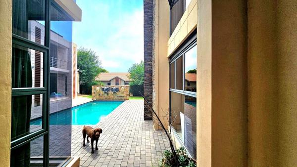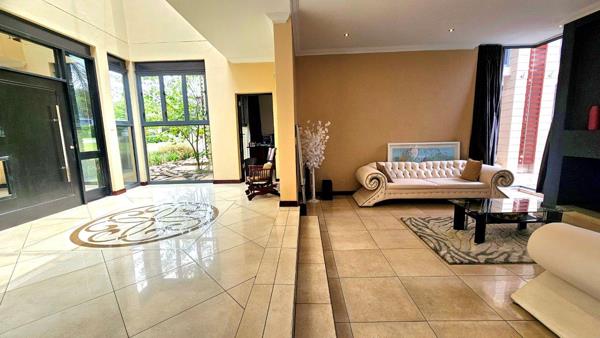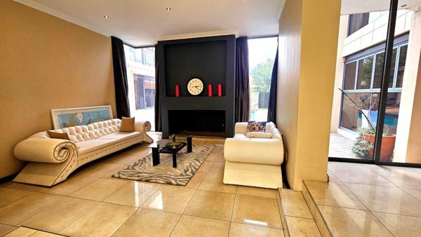 Located to the left of the reception area, a generously proportioned office/work space is situated, offering entry from the main home and exit via a sliding door to the entertainment space, complete with a sparkling swimming pool. The residence''s design places the pool at its central core, ensuring it remains accessible from the living spaces, and the kitchen/dining are as well as the guest suite, bar and patio areas . A fully equipped guest suite is conveniently positioned on the ground floor, complete with a separate entrance and an enormous full bathroom. An adjacent bar area and enclosed braai space further enhance the property.