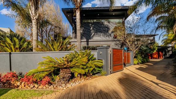 Both the kitchen and the living area open up through frameless towering glass on the the entertainment and patio areas overlooking the pool and evergreen garden. The covered patio is fitted with a large dual braai (gas and coal/wood options).