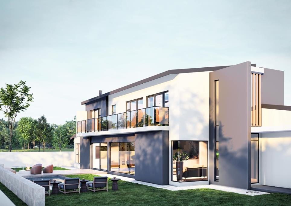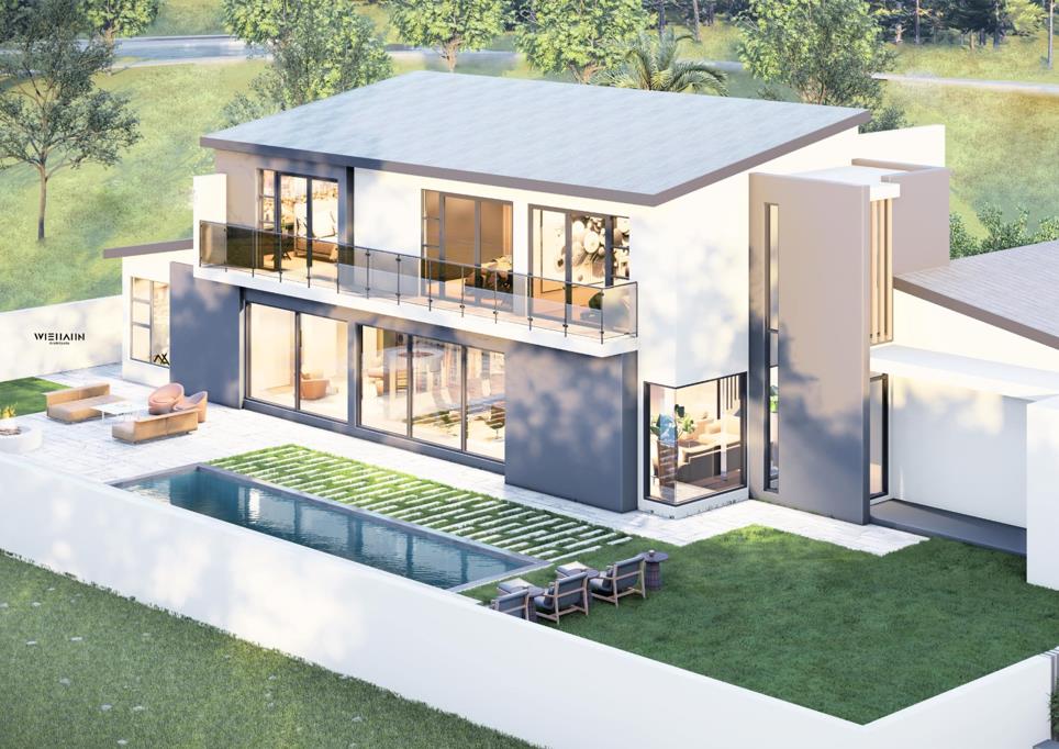Step into the opportunity to create your dream home with this brand-new building package in the sought-after Fountainbrook Estate. Designed for modern living, this double-story plan includes a double automated garage, spacious open-plan living areas with a formal lounge flowing seamlessly into the dedicated dining room, open-plan kitchen with a cental island and a separate scullery. Downstairs is also a well-appointed guest bedroom with an ensuite bathroom, separate staff quarters, generously sized swimming pool, boma, and a patio with built-in braai that opens directly to the garden. With its thoughtful layout, this home creates a seamless connection between indoor and outdoor spaces, ideal for entertaining or relaxing with family.