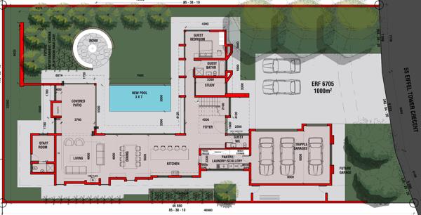 Building package available in the new Midstream Heights Estate - part of the greater range of Midstream Estates. This 5 bedroom with 5 bathroom home could be your start to estate style living. Featuring open plan living, dining and kitchen spaces, with access to your enclosed entertainment room with a built in braai. Stackerdoors from you entertainment room will take you to your private garden with sparkling swimming pool and an open air boma. Downstairs you will find your private study, guest toilet, and a 5th guest bedroom with en suite bathroom. Going up the stairs you will find your pajama lounge, and 3 spacious bedrooms with 3 en suite bathrooms. The main bedroom is very spacious and features a walk in wardrobe and en suite bathroom. Make the call today and arrange a meeting with the developer.