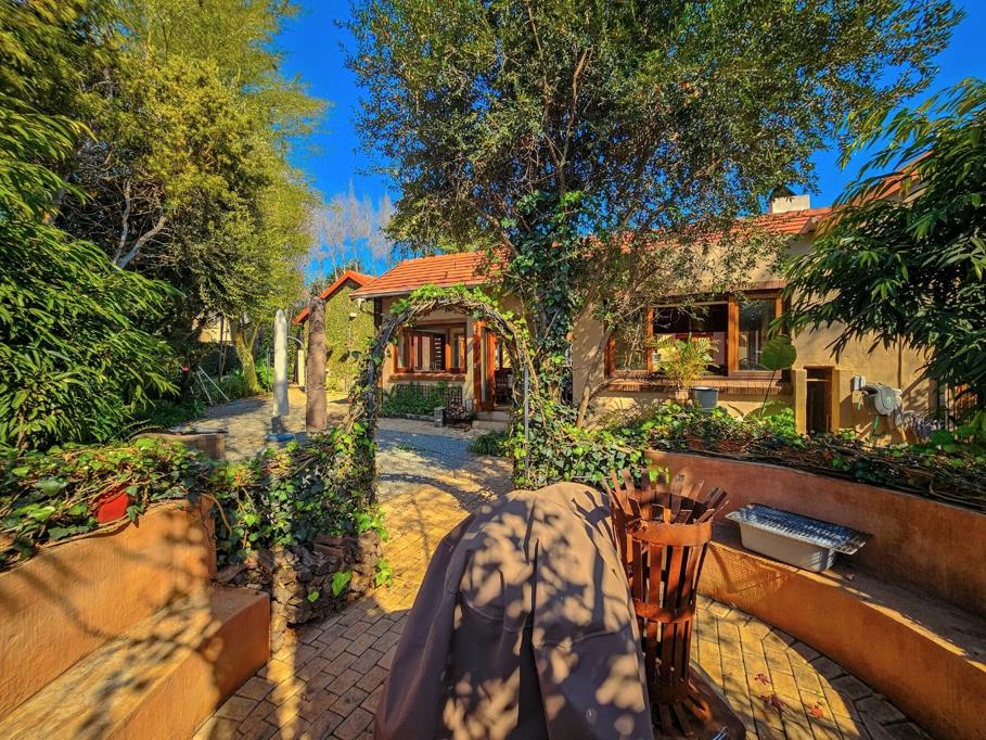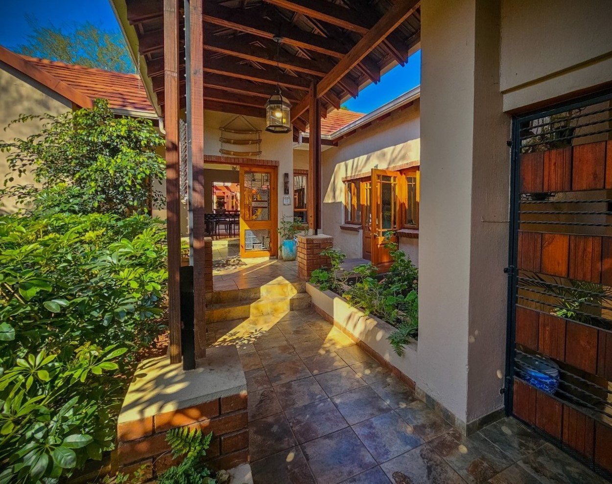 - The low-maintenance garden terrace is an absolute picturesque experience, with large trees, golden lighting, and lush greenery with a private seated boma.