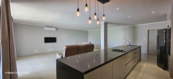 The open-concept layout is ideal for entertaining, with a spacious living and dining area that seamlessly flows onto a covered patio featuring a built-in gas braaiperfect for alfresco dining or relaxation. The kitchen exudes elegance with quartz countertops and a gas hob, while a separate scullery provides added functionality. Direct access to the attached double garage adds to the convenience of this luxurious abode.