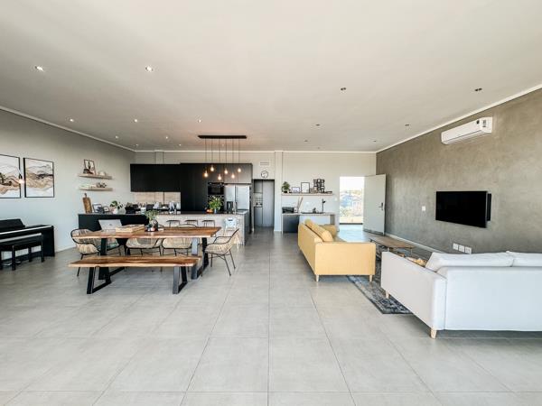 This highly desirable unit boasts premium finishes, an open plan layout with the lounge and dining room effortlessly extending onto the spacious patio with a built-in-gas braai, perfect for entertaining. This penthouse has 3 bedrooms of which 2 have en-suite bathrooms, and the 3rd bathroom is separate and ideal for your guests. The bedrooms are furnished with plenty of cupboards.