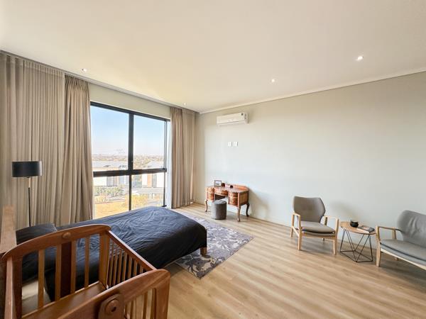 The lush greenery in front of the building leads to a clubhouse that features a boutique gym, lounge area with built-in braais, a 20m lap pool, volleyball court, and a play area for kids, providing ample opportunities for recreation and relaxation. Contact me to book your viewing appointment of this spectacular penthouse unit.