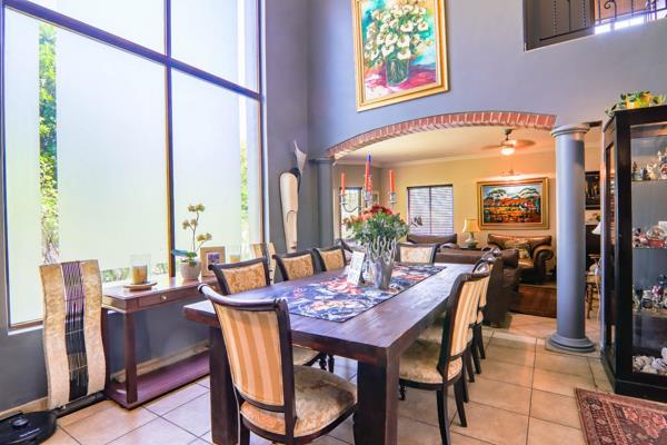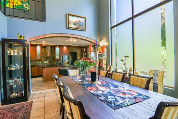 For those who love to entertain, the all-season enclosed entertainment area features a wooden built-in braai and opens up to a sparkling pool, surrounded by lush bamboo plants. The immaculate garden includes a cozy boma, perfect for gatherings. The main bedroom offers a walk-in closet and a full ensuite bathroom, while the other four bedrooms (one of which is also ensuite) are located upstairs.