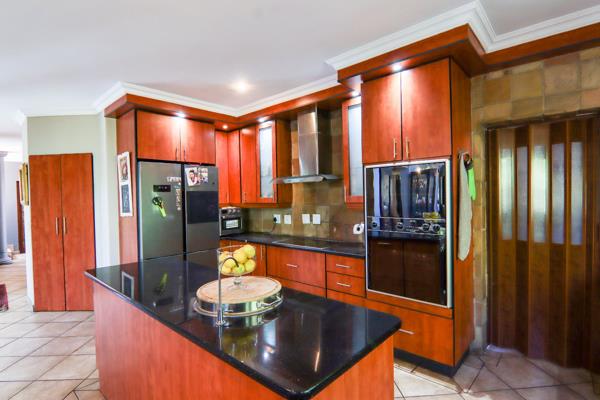 At the heart of the home, the kitchen is equipped with an electric stove, two electric ovens, plenty of built-in cupboards, walk-in pantry and a separate scullery. Additionally, there is a dedicated laundry area for convenience.