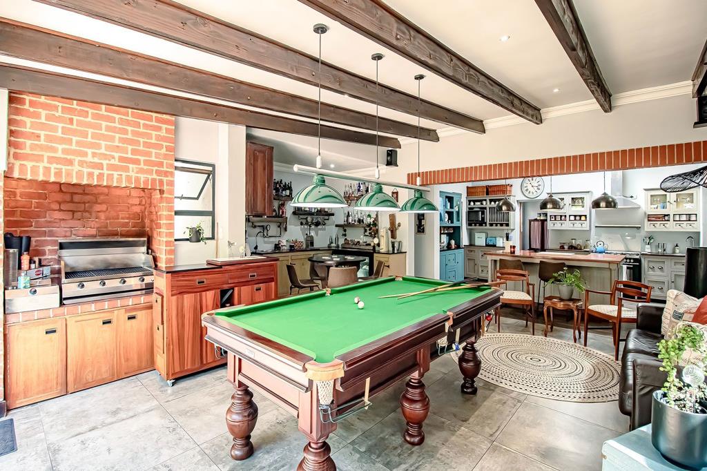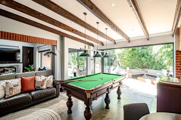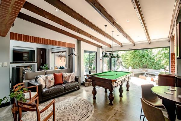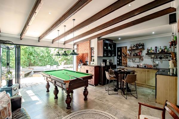 The entertainment offering is exceptional. A built-in braai and stylish bar area open onto a lush, landscaped garden, encouraging an easy transition between indoor comfort and outdoor leisure. The design invites light, air and greenery into every corner, enhancing the homes sense of calm and connection.