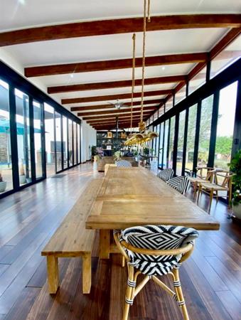 * Stacking doors opening completely onto the garden and swimming pool lovely for a cool summer breeze