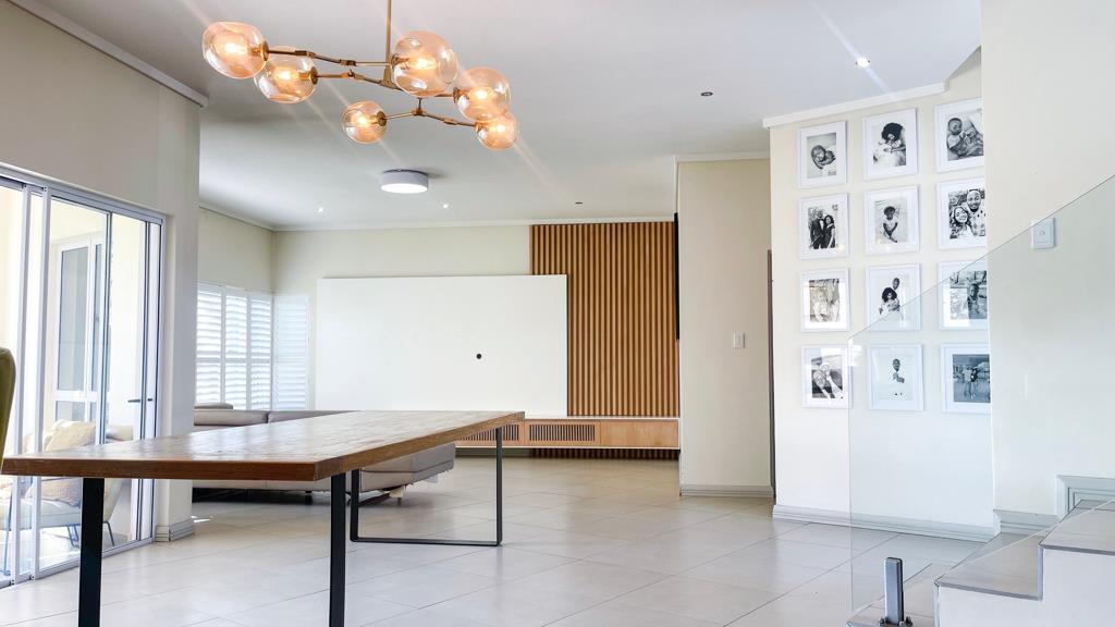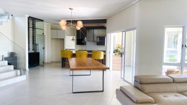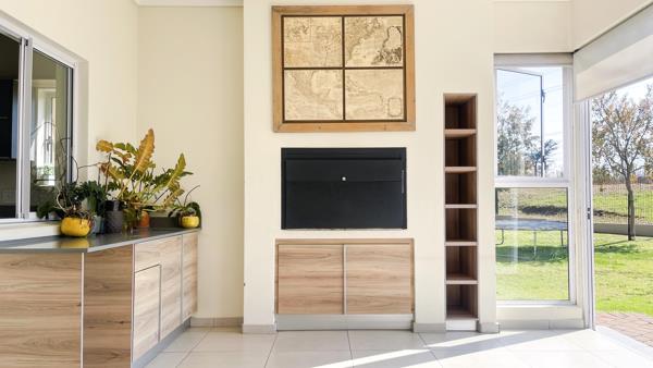 Open plan living, beautiful lighting, stunning kitchen with a high-quality gas stove. The kitchen has a separate scullery with more than enough storage for your kitchen needs. The lounge and dining areas flow seamlessly leading to a spacious social environment ideal for hosting family and friends, with an indoor fireplace.
